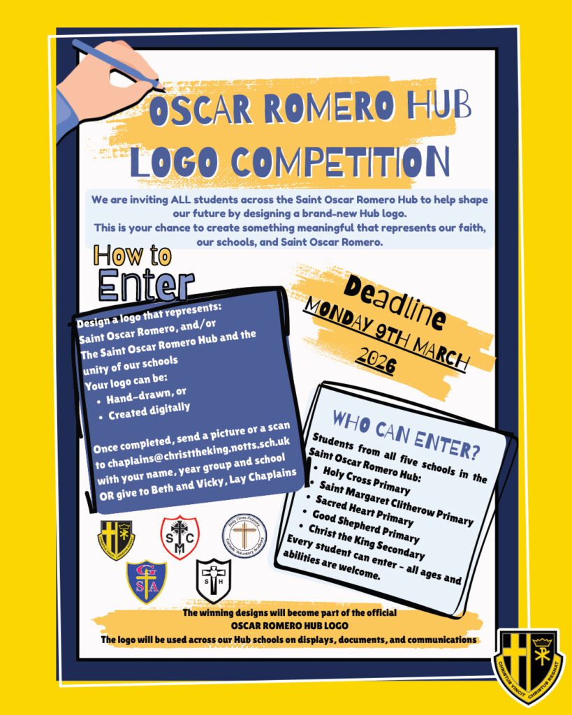 We are inviting all students across the Saint Oscar Romero Hub to help shape our future by designing a brand new Hub logo! This is a chance for students to create something meaningful that represents our faith, our schools and Saint Oscar Romero.